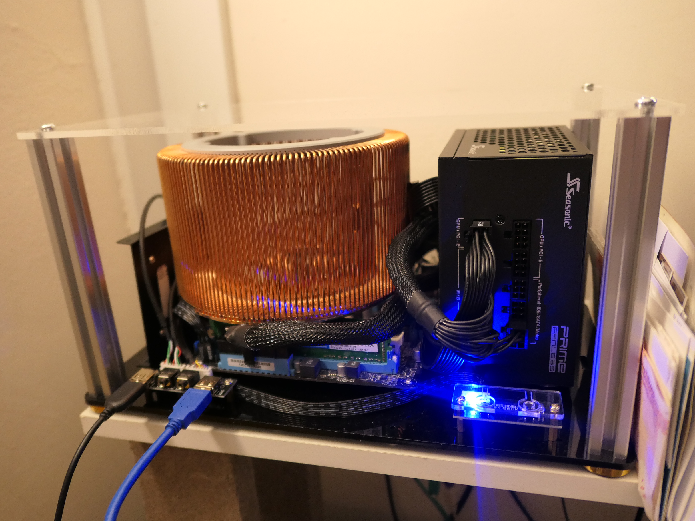 Late 2020, built my first fanless system from the Asus motherboard, swapping for a WD Blue SSD, No-Fan CPU cooler, and Seasonic fanless power supply, all in an open chassis. I LOVE THE SILENCE–WHY DIDN’T I DO THIS YEARS AGO!?! Oh yes, also swapped in an Intel Core i7-3770T.