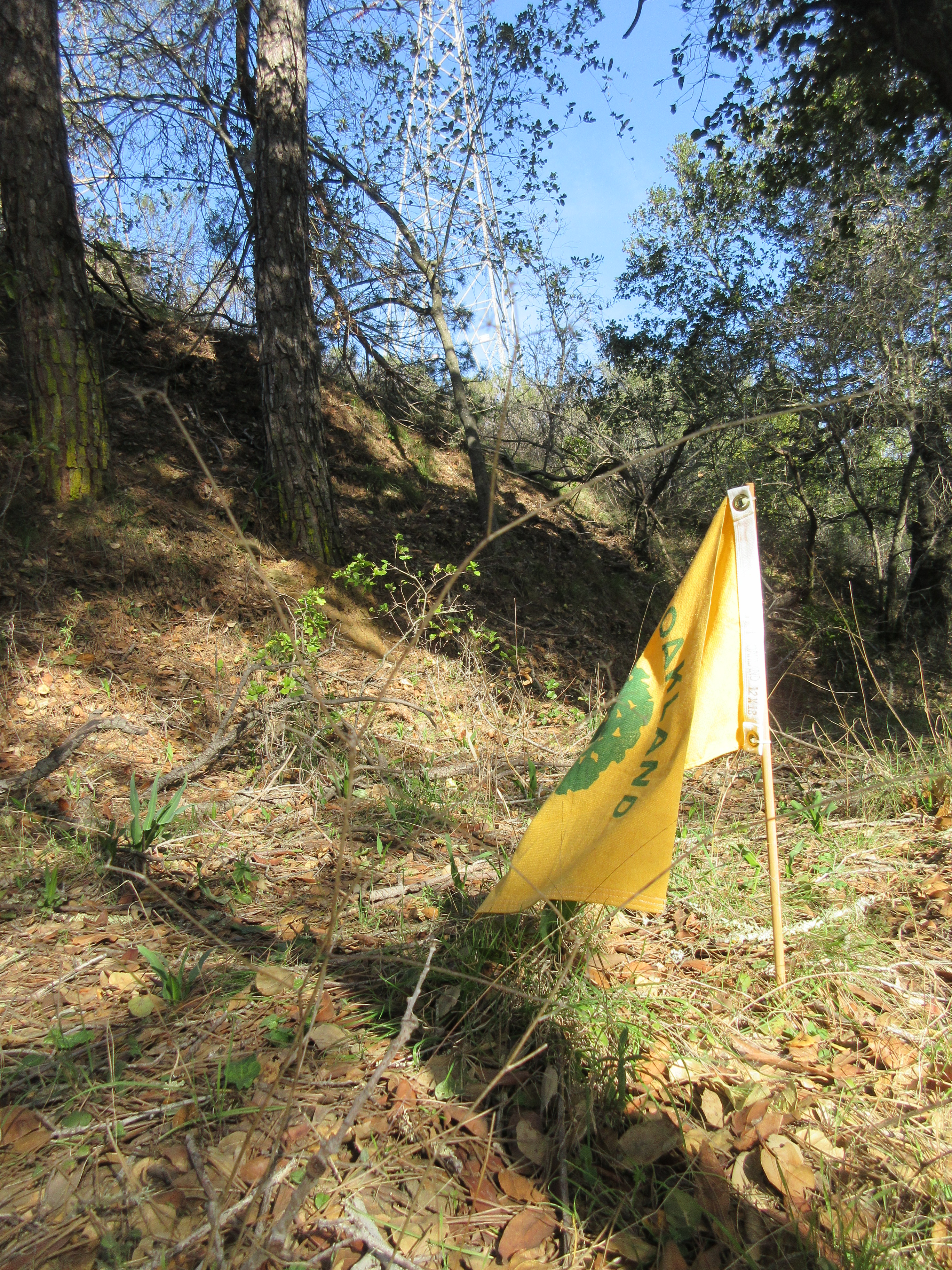 The easternmost point is about 110 feet east of the Goldenrod Trail in Anthony Chabot Regional Park, about 1/3rd mile south of the conjunction with Columbine Trail. This is about 800 feet east of the eastern edge of the lower fairway of Hole 1 at Lake Chabot Golf Course.