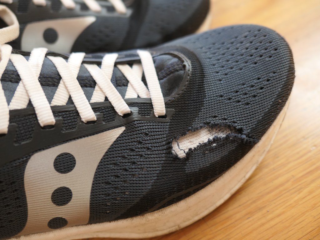 Because of my straight feet, I have to cut the uppers of some shoes–yes, even $$$ Saucony Endorphin Pros. Ouch!