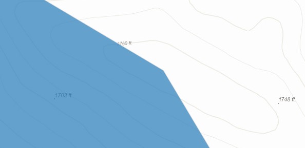 1. This USGS map reckoning (also reflected in Open Street Map), along but not above the 1740 ft. elevation contour: