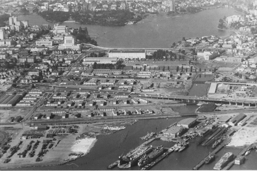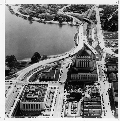 The Museum’s built environment includes the Alameda County Courthouse (1936), the Henry J. Kaiser Convention Center (formerly the Oakland Auditorium, 1915), and Laney College (1970). Other nearby landmarks have come and gone. Here are some of them.