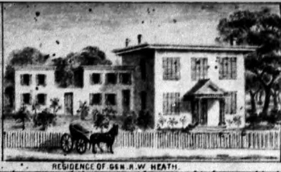 Possibly the first structure on the OMCA site: residence of General R. W. Heath, at Oak St. x 11th (detail from 1860 map of Oakland, Oakland Public Library History Room)