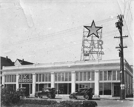This dealership for the entry-level Star line of Durant automobiles was at Fallon x 12th, now under Tony Labat’s “Big Peace IV” sculpture and where the 11th St. tunnel emerges. Durant Motors ceased operations in 1931. A large billboard replaced the Star signage and remained for many years. The building was demolished for the construction of the Museum.