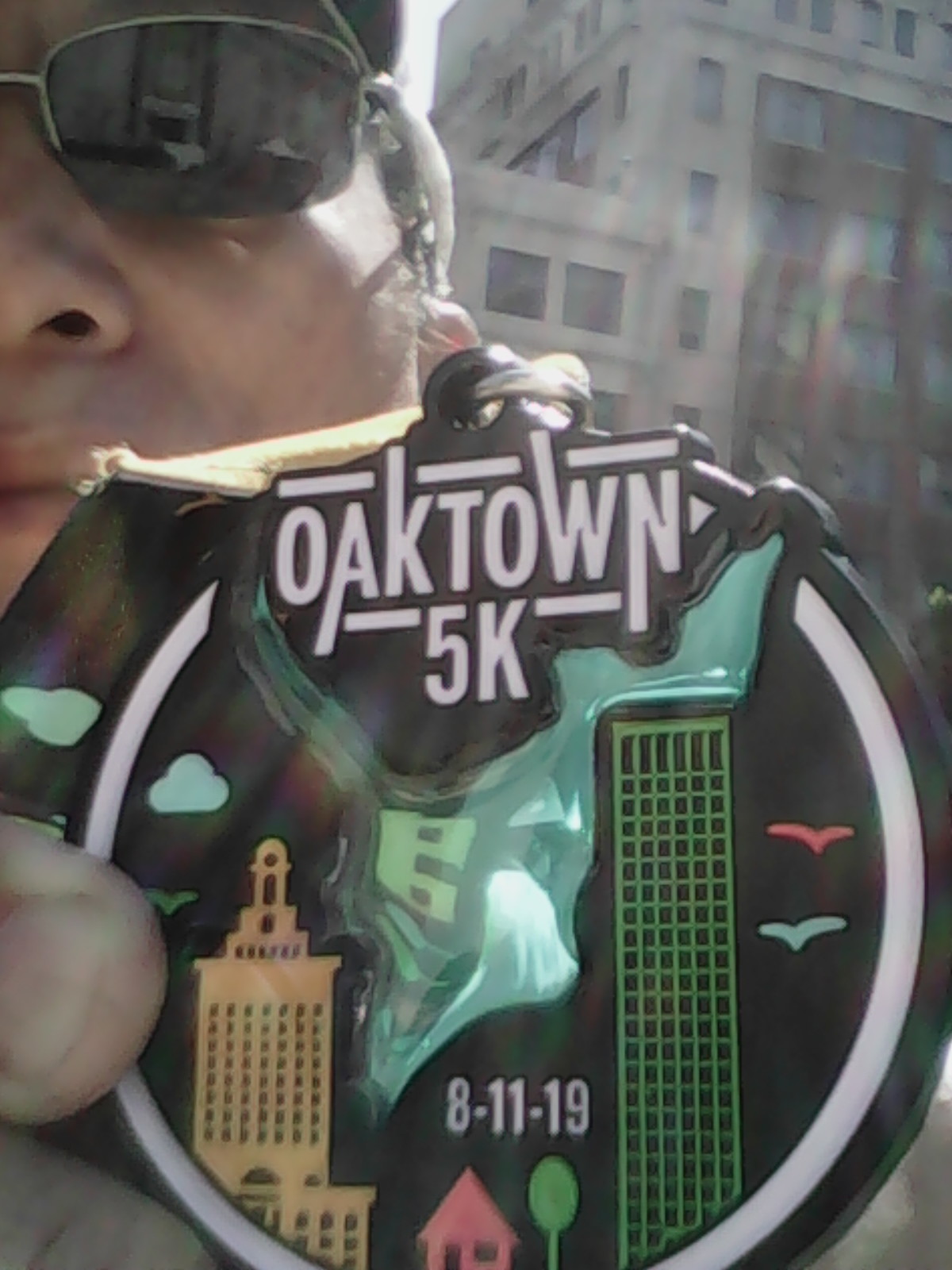 This is actually just more old age and not because of running. The pain in my upper and lower left leg was debilitating at times. Did PT, Pilates, acupuncture and moxibustion and somehow got better. (I think what actually helped most was just time.) Nevertheless painfully hobbled the Oaktown 5K (downgraded from the Half) because I really wanted the medal with the cool translucent Lake Merritt!
