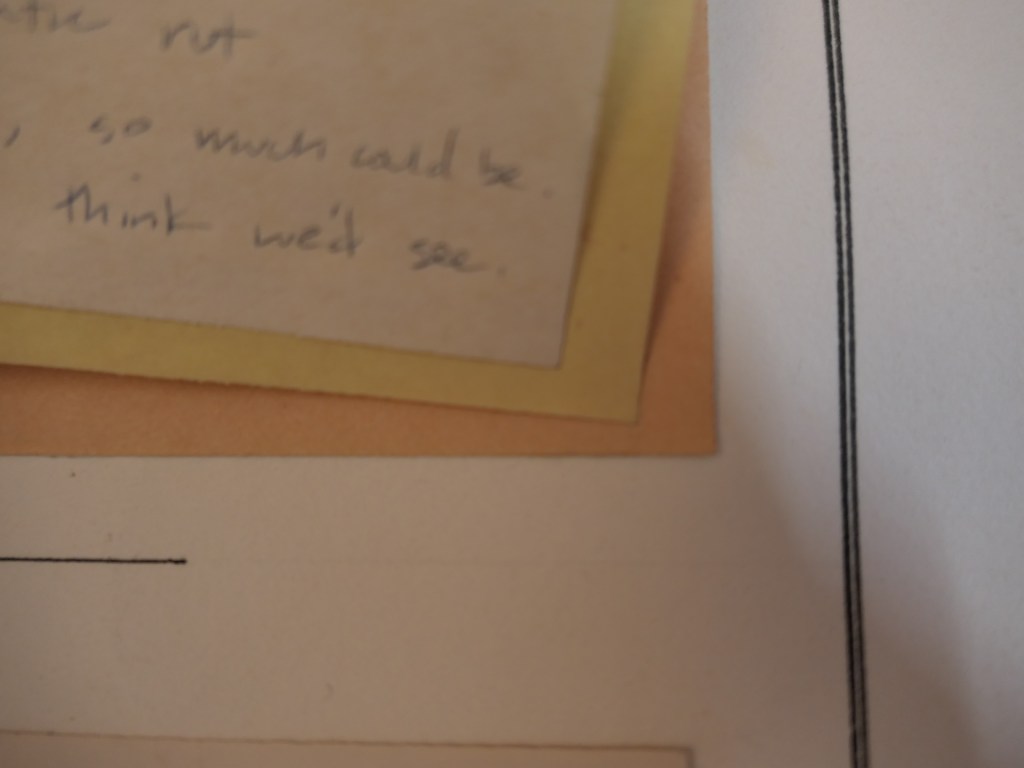 Back in the day, this was the kind of thing a young man did to try to win a young lady’s heart: over a dozen sonnets I wrote and then set out, each with a specifically meaningful paper treatment. This was all done by hand except for a few cut from a copy of Oak Leaves 1979, our high school literary annual; and one I phototypeset (this was all pre-personal computers!). I don’t think I ever completed the set and there might even be one or two missing. They’re rather full of teenage ardor and angst, which is all you otherwise need to know about them! (You can read two of them here.) It hung in a place of honor in Lisa’s freshman dorm room.