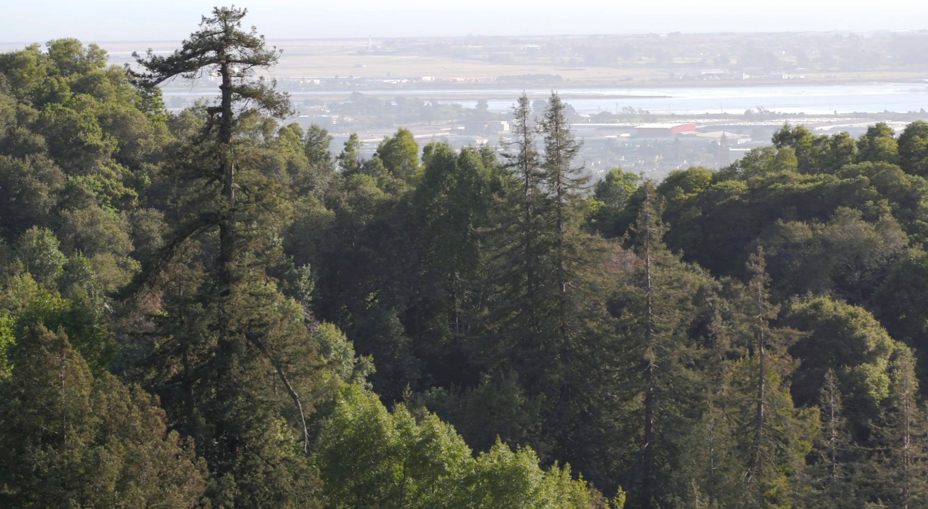 Five miles and fifteen minutes from downtown Oakland, I’m standing alone in a redwood forest, about halfway up a steep hillside. The only sounds I hear are the chatter of birds, the wind in the trees, and a creek splashing far below. The canopy of branches high above bathes everything around me in dappled shade. It rained yesterday, so the forest floor is glistening, and fresh. At first glance, other than the trail I’m on, nothing I see–the trees, the huckleberry bushes, the wild ginger and sword ferns–tells me humans have been here in consequence. For the moment at least, there’s not even the sound or sight of a mountain bike to tell me roughly what century it is. But then I notice that all the redwoods are unnaturally uniform in age, all fairly young for the species, maybe a century old or less, and crowded in clumps. Someone has been here. Something happened.
