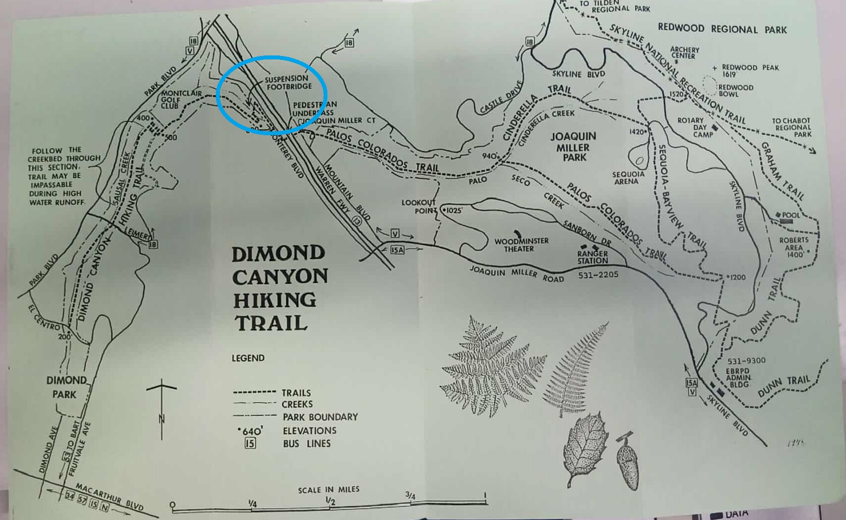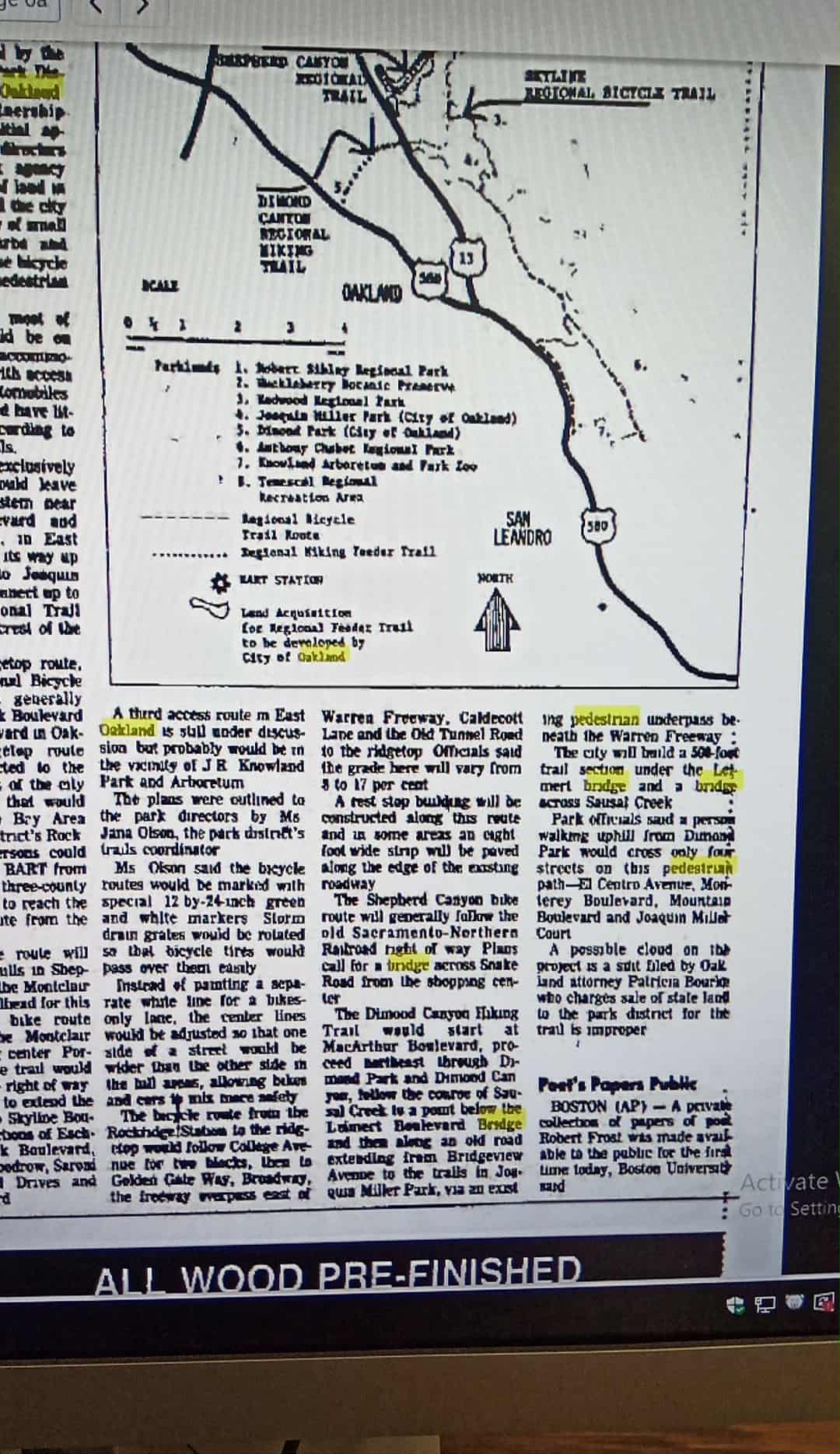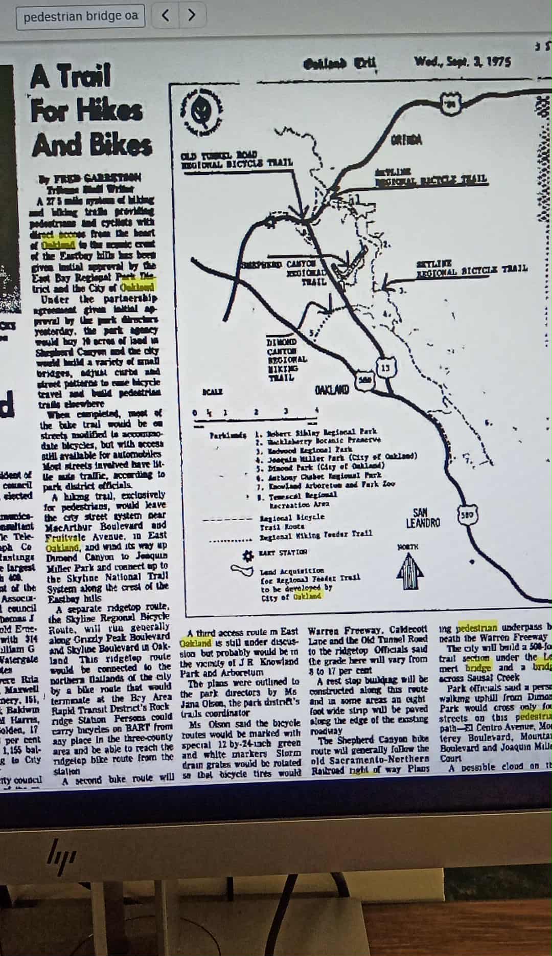 This September 3, 1975 Oakland Tribune article on local trails describes the “Dimond Canyon Regional Biking Trail” being developed by the East Bay Regional Parks District and the City of Oakland. Something must have derailed this project because most of it never got developed as described.
