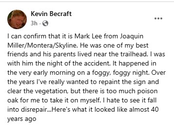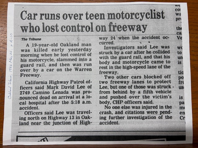 Sadly, it turns out Mark David Lee was a local teenager who died in a 1986 motorcycle accident nearby on Highway 13. Many thanks to Oakland Librarian Menghsin Horng and Facebook contact Kevin Becraft for the confirming details.