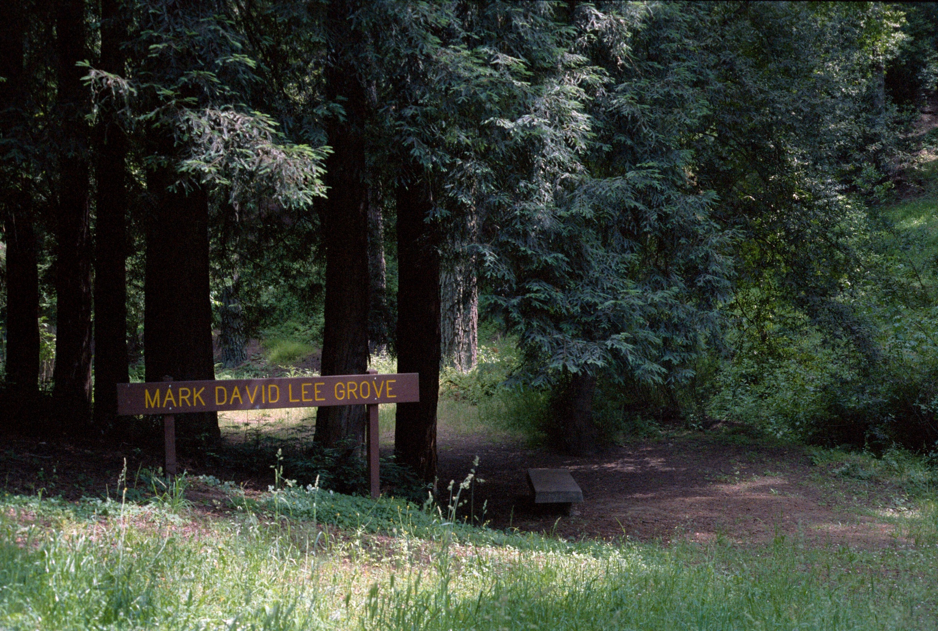 In Oakland’s Joaquin Miller Park, at the western end of the central Meadow, there is a grove of redwoods dedicated to Mark David Lee. Who was he? No one seems to know.