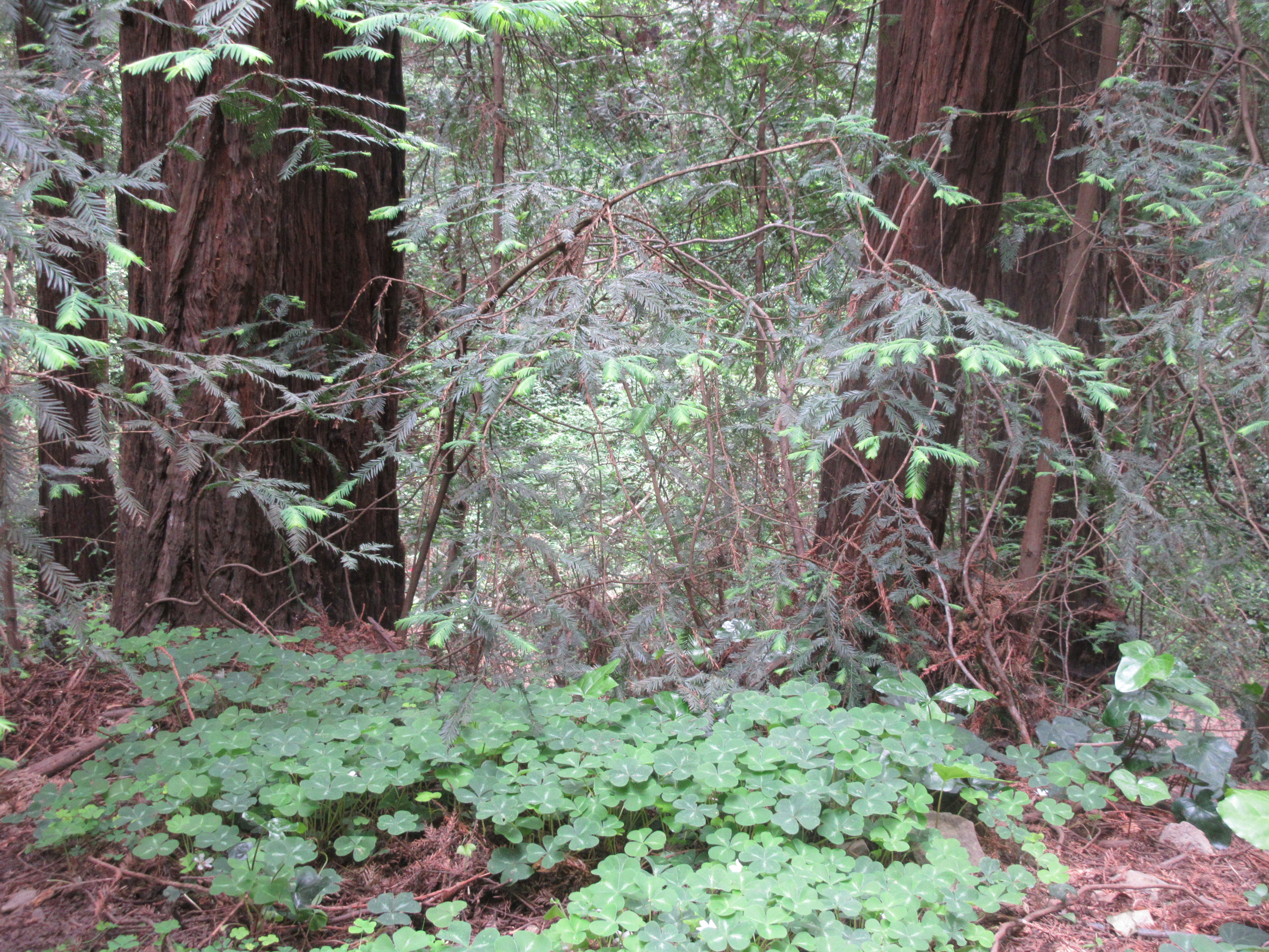 BTW this grove features the only surviving native patches of redwood sorrel (Oxalis oregana) I’ve seen in the area, as well as parts of virgin redwood stumps.