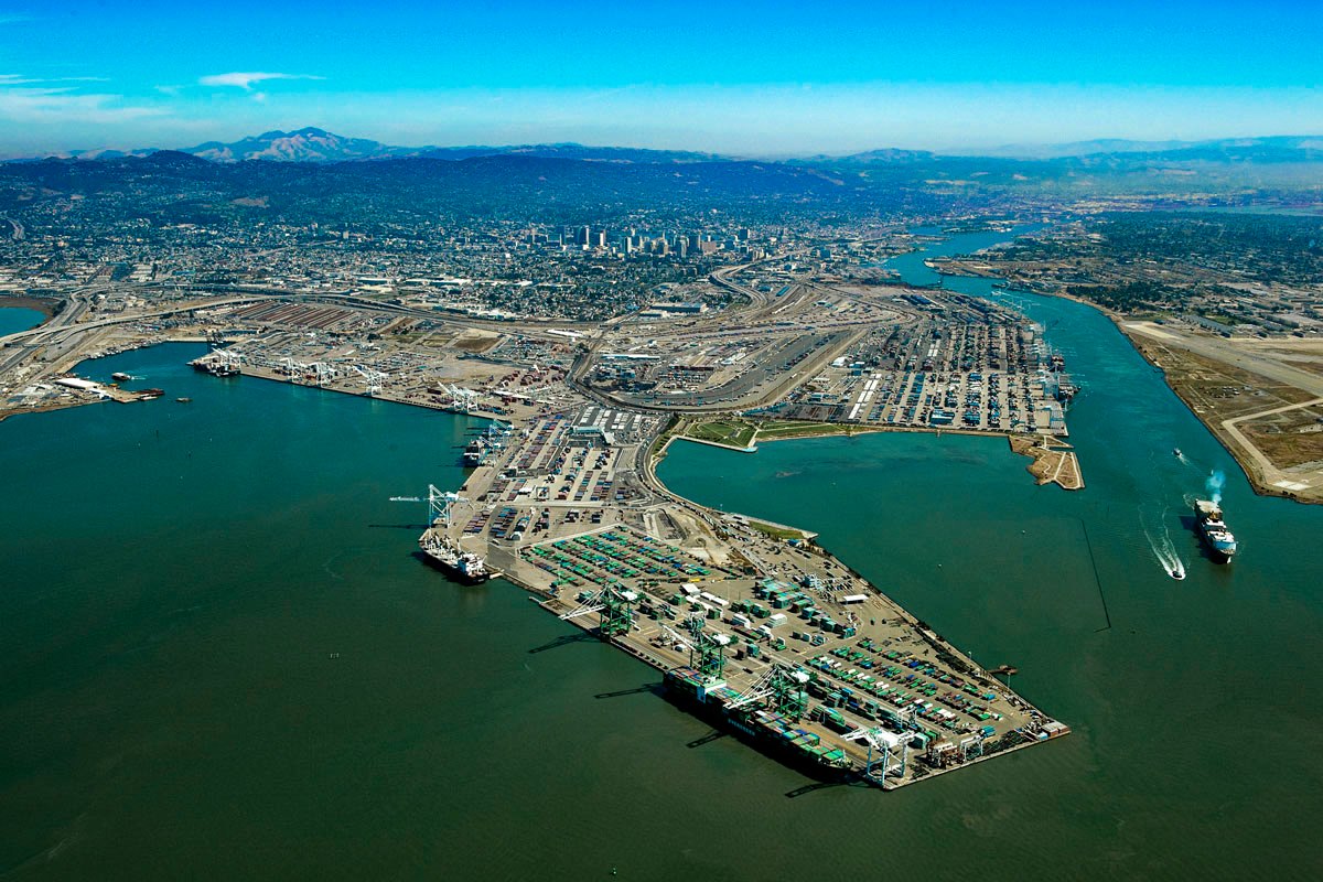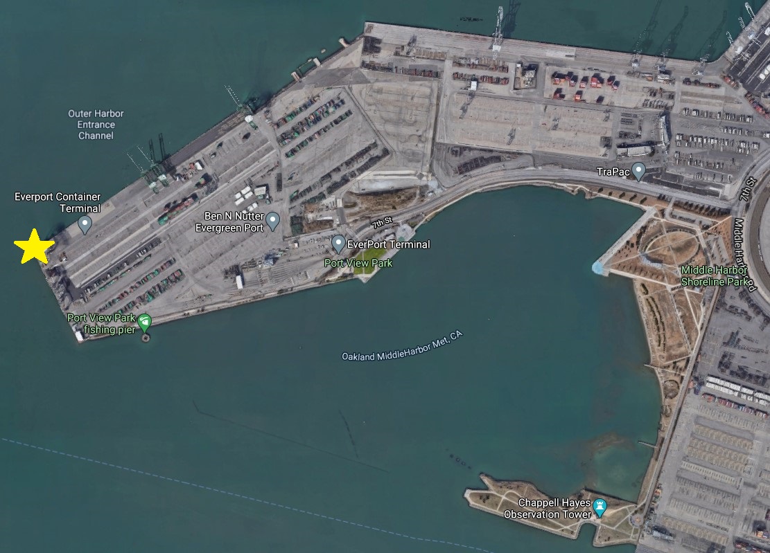 On land (W3a): Tip of the Ben E. Nutter Terminal at the Outer Harbor of the Port of Oakland,